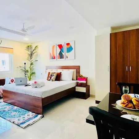Bluo Studio Gachibowli - Terrace Garden, Lift公寓距离拉吉夫-甘地国际35公里,步行5即可到Cyberabad Police Commissionerate公交车站. 住宿场所为旅客提供汽车租赁服务出租.